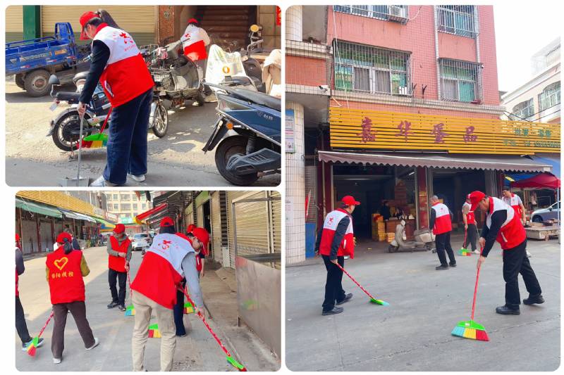 活動現(xiàn)場,志愿者分成5個小組,在市場管理人員的有序安排下,有的拿掃把、有的拿簸箕,擼起袖子,熱火朝天地開啟了環(huán)境衛(wèi)生大清掃行動。衛(wèi)生死角、墻壁上各類小廣告、地面積水垃圾等都被一一清理干凈,市場環(huán)境面貌在志愿者們的努力下煥然一新。